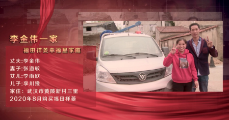 李金伟 LIJINWEI 幸福星家庭获奖者 福田祥菱V2车主 创富路上,祥菱陪伴着万千卡友共同致富,想要提升效率,选择一辆高性能的祥菱微卡,是最快速并有效的方式。 今天故事的主人公是“福田祥菱幸福三重奏暨万人创富群英汇活动”,武汉站中的幸福星家庭荣誉称号