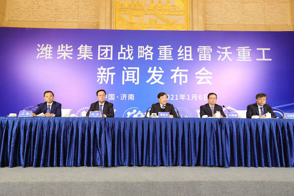 2021年1月6日上午10时,潍柴集团在山东济南召开新闻发布会,在上百家媒体记者的共同见证下,山东重工集团、潍柴集团、中国重汽集团董事长谭旭光宣布,在山东省委省政府的推动和潍坊市委市政府的大力支持下,潍柴集团正式完成对雷沃重工的战略重组。