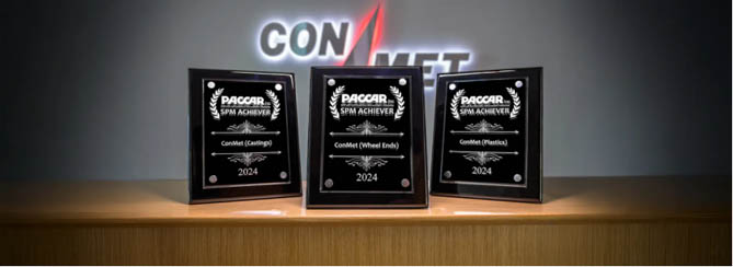 2025年5月,康迈(ConMet)荣获PACCAR颁发的两项重要年度大奖:连续第八年蝉联10PPM(每百万件缺陷率低于10件)供应商质量成就奖,并再次斩获三项2024年度供应商绩效管理(SPM)奖,充分彰显其在产品质量与综合绩效方面的行业领先地位。“10PP