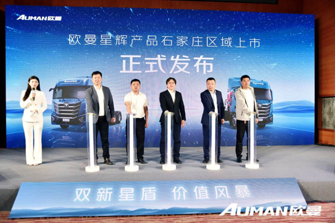2025年4月9日,“双新星盾 价值风暴——星辉动力13L 500 马力燃气车石家庄首发”活动隆重举行。现场,搭载全新定制星辉动力的欧曼星翼 13L 500 马力燃气牵引车正式上市,并发布“服务保障联盟”计划,以领先品质产品和人性化服务为广大用户资源运输赋能,