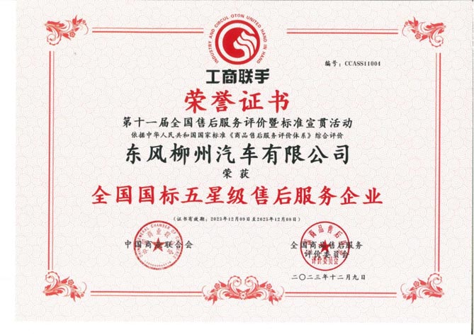日前,由中国商业联合会主办的“第十一届全国售后服务大会”在北京召开。东风柳州汽车有限公司凭借完善的服务体系、高效的服务模式,提高客户满意度赢得市场口碑,斩获“全国国标五星级售后服务企业”以及“全国售后服务TOP10”两项殊荣。