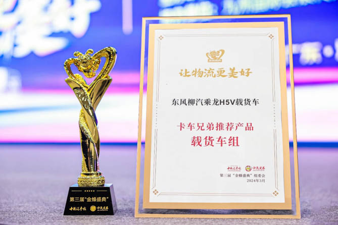 3月7日,由人民日报旗下中汽兄弟主办,汽车行业权威媒体中国汽车报社、权威研究机构中汽研提供指导支持的第三届物流运输行业“金蜂盛典”在深圳举行。在盛典评选中,东风柳汽乘龙力压群雄,连续三届荣获公益类“卡车兄弟推荐公益品牌”荣誉称号,旗下乘龙H5V凭借优异的产品性能,蝉联载货车组“卡车兄弟推荐产品奖”。