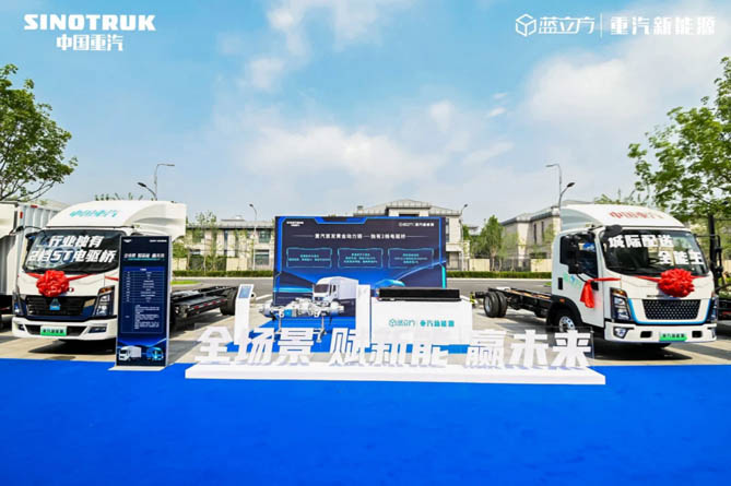针对城配、城际运输市场,中国重汽新能源聚焦北京客户需要的强动力、大电量、长续航、高承载等核心需求,依托深厚的研发实力,推出悍将、悍将M、统帅、统帅PRO等覆盖全场景的丰富轻卡产品组合。车辆搭载重汽首发黄金动力链,独有2档电驱桥,配备大功率4档位能量回收手柄,140KW扁线电机,标载省电、重载动力强劲,适用于城际冷链、快递等全场景运输,为客户带来一体化解决方案,助推城市货运绿色化进程。