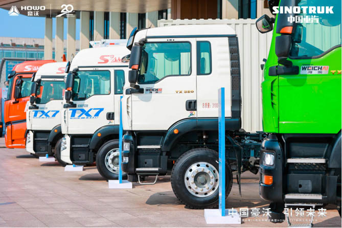 在消化吸收国外先进技术再创新的同时,中国重汽也不忘“走出去”。事实上,中国重汽是第一个将我国重卡产品带出国门的企业。豪沃品牌自2004年诞生以来,就开启了出口海外的征程。二十年来,凭借着对各个国家政策及环境的更深层次了解,中国重汽对产品进行区域适应性改进与开发,在重卡行业出口数量上独占鳌头,其出口数量甚至比很多企业历史以来的总销量还要多,其中,豪沃依然是敢为人先的王牌 。