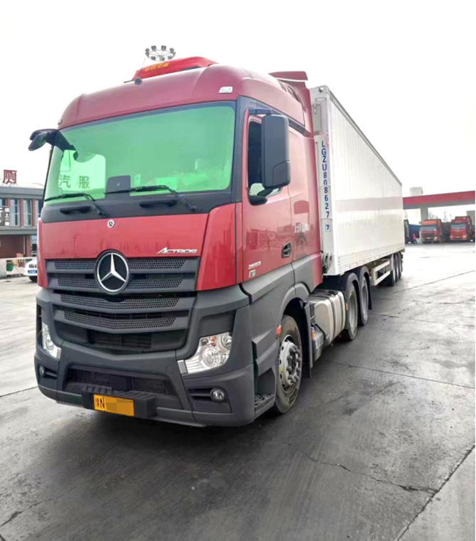 为了尽早将车提回公司,王家强专程从新疆赶回河南商丘。作为从业27年的资深物流人,王家强手里的卡车已经积累到31辆,按理说,他不会为了接一台新车而奔波千里,但这次不一样——随着第6辆奔驰卡车的加入,他经营的河南商丘民权圣达冷链物流,“全面奔驰化”的进度条正在加速。