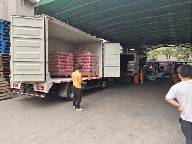 说到效率,俞老板在运输效率的把控上也很有心得。比如车队车辆都是厢式上装,防水防晒,可以保障雨雪天气正常出车,确保每天供货稳定。装车时,饮料会使用托盘承载,再用叉车装车,速度快、效率高。为了提高装车效率,在后面的采购中,俞老板还特地选择了侧边四开门货厢,进一步节省装车时间。
