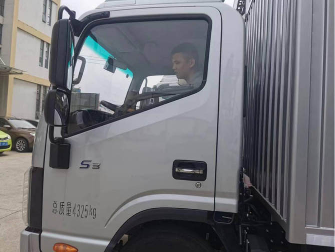 有亲戚这位老师傅把关,余老板试驾时对自己的用车需求也清晰很多。他自己是第一次接触卡车,之前没开过,4米2的蓝牌轻卡开起来还是感觉有点大,拐弯不太方便,自己的运输量不是特别大,有个3米多的货厢就完全够用。最后,余老板就选了这辆3米7货厢的帅铃S3小卡。