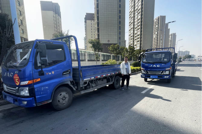 今年3月,随着公司业务的扩大,朱老板再次订购了2台骏铃V5平板车。未来,相信在这三辆江淮1卡骏铃V5的陪伴下,朱老板的业务一定会越跑越顺、越跑越多,生意一定会越做越大,收入也会越来越高。