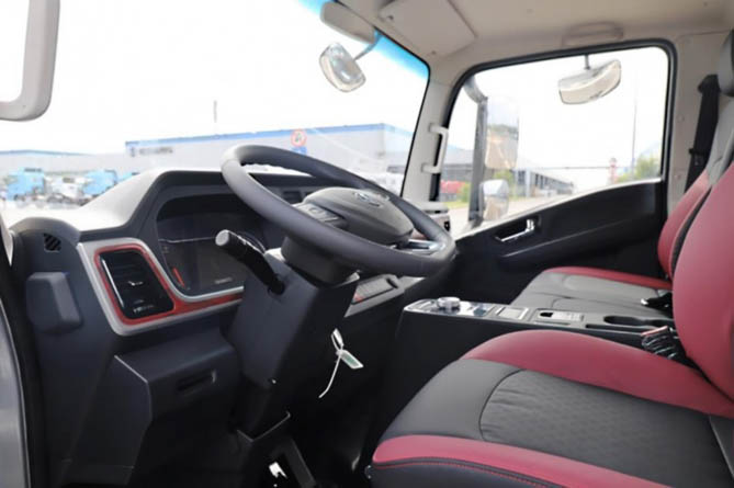 德龍G300-AMT搭载的康明斯2.5L发动机,最大马力163马力,最大扭矩460Nm,低速时也能爆发出330Nm的强劲扭矩,即使起步、爬坡、超车等工况下动力依旧充沛。闫师傅对此十分满意:“这车装满货后,也毫无压力,开起来挺冲的。”同时,德龍G300-AMT配备的法士特二代电控液推变速箱,换挡响应迅速,动力传递高效。此外,踏板设计优化,油门踏板轻盈,制动踏板力优于竞品 60N 更轻便,加速和减速操作舒适。转向系统也采用了多齿花键转向管柱,转向更轻便。