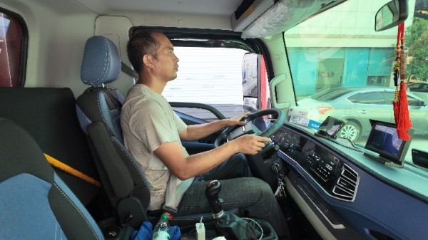 “以前开别的品牌车,跑俩小时就累得慌!发动机噪音大得很。现在这款车可不一样,驾驶室门一关,噪音小太多了!高速上跑着,跟副驾聊天不用特意拔高声音,舒服得很。”任师傅还笑着说:“这方向盘握着手感也好,倾角也合适。而且还是气囊减震座椅,过减速带、走坑洼路的时候,一点儿也不颠得慌,现在跑长途,可比以前轻松太多啦!”
