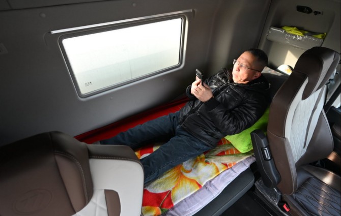 欧曼银河5M纯电重卡座舱之内,满是人性化的舒适设计,告别传统重卡的局促与疲惫。其采用纯平地板设计、大空间布局,头部与腿部空间十分充裕,长时间驾驶也不会觉得压抑;清晰易读的大屏搭配智能语音控制,操作便捷,“有啥事直接说,它就给办了,手不用离开方向盘,分心少了,开车也更安心”。更让刘师傅满意的是车内的卧铺,“路上红绿灯多,开久了难免会累,休闲的时候躺下来休息一会儿,特别舒服”。此外,车辆密封效果出色,搭配低噪音电驱系统,营造出静谧舒适的驾乘环境,休息时能睡得更安稳,也让漫长的运输路途多了一份惬意。