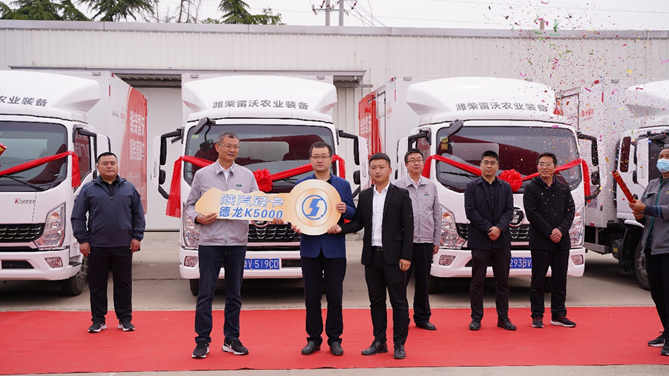 此次双方的合作,不仅是潍柴集团内部资源共享、优势互补,共同为客户进一步创造价值、提高服务竞争力的典范,更是国内高端轻卡助力高端农业的经典合作。双方将共同秉承“客户满意是我们的宗旨”核心价值观,为广大农机客户提供更快速、便捷、优质的服务,助力2022年夏收生产的全面丰收。5月14日,山东汽车销售公司在潍坊举行了隆重的批量交车仪式,向潍柴雷沃重工交付20辆陕汽轻卡德龍K5000。潍柴动力、潍柴雷沃重工、山东汽车相关领导出席本次活动。