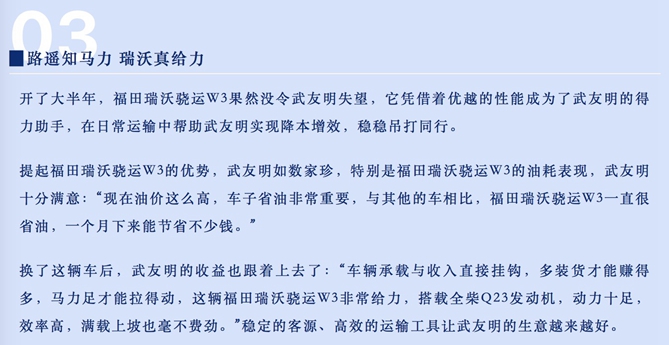 福田瑞沃骁运W3助力卡友创富路上乘风破浪