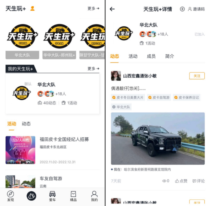 福田皮卡为广大皮卡粉丝打造了一个可以互动、交流、分享、嗨购的潮流主阵地,皮卡生活APP将成为皮卡爱好者链接线上与线下,形成圈层交互的潮玩领地,围绕五大核心功能板块,网罗多元精彩皮卡车生活。