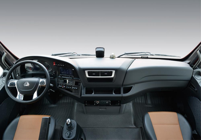 配置方面,汕德卡危化品牵引车带有7寸彩屏仪表、电动带电加热后视镜、电动天窗、真皮多功能方向盘等轿车化配置;配备多媒体大屏,集成自动空调、差速锁、缓速器、取力器、驻车空调、滤芯加热、主副油箱切换、自动大灯等功能,提升人车交互体验;搭载智能通车联网系统,支持蓝牙互联、WIFI、导航等功能,以领先行业的智能互联科技,赋能智慧运输,更有中国重汽七星级“亲人服务”全生命周期护航,用心守护无忧旅程,让危化品运输轻松无患。