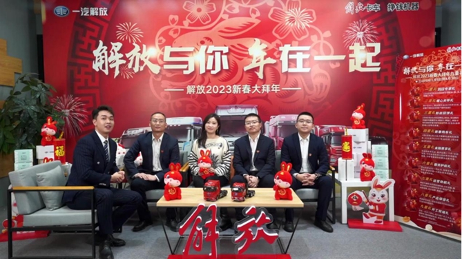 一汽解放新能源汽车销售有限公司,客户运营部部长王睿、销售部销售策划室主任张杰敏、服务保障部服务策划室主任赵会、营销创新部后市场业务室主任高楠来到直播间,继上一场直播的新春九重豪礼之外又带来加磅的额外政策,详细解读了经销商线下礼品及线上认筹的火热盛况,活动期间各种权益办理,线上认筹,四大平台联动送豪礼及年后开工卡友享专属政策等。更全面的优惠政策代表着解放心系每一位卡友的诚意,在长途跋涉的道路中解放为大家的安然太平坚持守护,共筑未来。