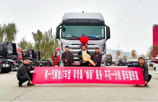 2020年7月起,解放为J7车主免费赠送“焕新”服务,J7车主自购买之日起3年内,车辆若因意外事故发生全损,推定全损或车损达50%以上,用户在获得商业险理赔的基础上且再次购买解放J7新车时,即可获得包括车辆折旧费+购置税+上牌费等多项补偿金,用户拿着商业险保险理赔+解放J7“焕新补偿金购车,就相当于不花钱提一辆全新的解放J7回家。该服务最大程度为卡友解决了事故发生后再次购车的经济压力,而且快捷的服务流程及超短的理赔周期也满足了卡友的切实需求。