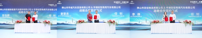 卓越的产品性能、“一体化”的解决方案赢得了客户高度认可,开业仪式现场,宇通轻型商用汽车有限公司营销中心粤西经营大区经理任钊作为宇通轻卡代表先后与佛山市跃健新能源汽车服务有限公司、佛山市宇威汽车贸易有限公司、佛山市百佳物流有限公司3家头部企业签订战略合作协议,为开业赚了个好彩头。