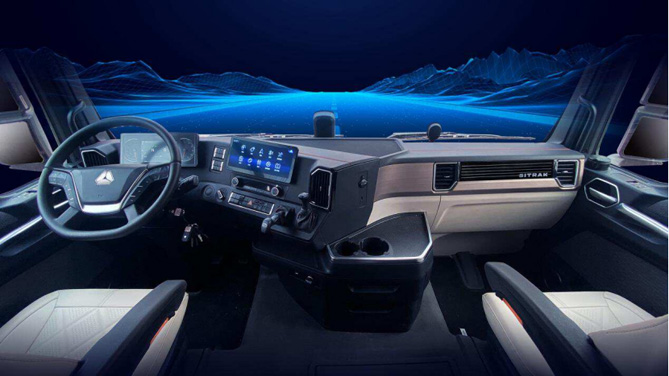 以汕德卡G7S为例,车辆采用气囊减震座椅,集成多向调节、通风加热等功能,配合环绕式工作台、多功能方向盘等,更有无忧自动挡解放司机右手和左脚,提升操控便利性,降低驾驶强度;彩色液晶仪表盘、12.3寸的智能中控屏、语音交互功能、52dB极致静音、豪华轿车同款极致控温空调等配置,带来奢华享受;欧式平地板,850mm超宽卧铺,大容量储物空间,舒适如家,让卡友行千里,皆舒心。
