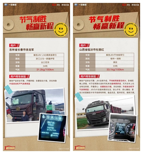 她强调,之所以选择J6V天然气车,是看中车辆升级发动机“节气”效果明显。该车动力升级,达到同级别发动机国内最大功率(530Ps),最大扭矩2500N·m,实现强劲的起步动力输出。且车上1500L气瓶,标配气瓶智能增压系统,实现气瓶压力自动控制,不仅保证发动机爬坡等大负荷工况时的动力输出,还可提高续航里程。杜女士说,相对其他品牌车型,解放J6V百公里约节省气耗1kg,按车辆年行驶20万公里估算,一年就能节约费用近万元。