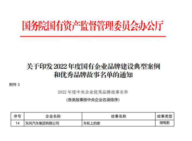 “卡车司机的生活,拍得太真实了”、“没忍住,看哭了”、“每个父母都不容易”……。不久前,东风柳汽乘龙以卡友的生活故事为题材拍摄的微电影《车轮上的家》引起了不少卡友的共鸣。这部微电影在近日还入选国务院国资委公布的2022年度中央企业优秀品牌故事名单,向社会各界展示了东风柳汽乘龙“用心成就卡车人”的品牌理念和价值主张。