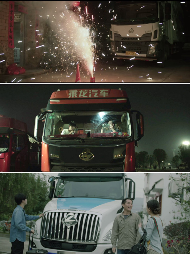 《车轮上的家》讲述了一位普通卡车司机十几年的生活变迁。儿子考上了心仪的985大学,于是他决定和妻子一起,开着卡车送儿子去外地上学。随着旅行的展开,儿子从小跟着跑车的回忆不断被勾起,串联起这个普通卡友家庭十几年来生活中的酸甜苦辣,展现出一个特殊的“车轮上的家”。影片中,父亲驾驶的乘龙M3、H7再到T7房车的车辆变化,见证了这个家庭不断向好的变迁过程,折射出乘龙成就卡车人的品牌理念。