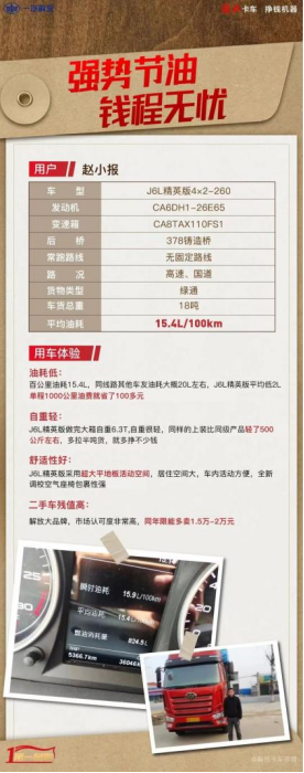物流江湖风起云涌,货运司机渴望找到降本增效的卡车,作为致富路上好帮手!有一款卡车的节油实力着实不俗,深得用户好评,它就是解放J6L精英版载货,百公里油耗最低仅15.4L。