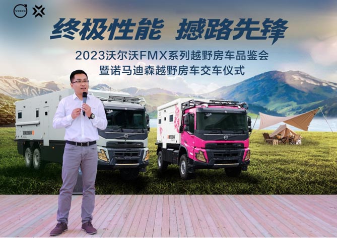 沃尔沃卡车中国销售副总裁郭涛先生现场致辞表示:“沃尔沃卡车于2020年开始关注国内房车市场,经过三年的探索与推广,已于2023年达到新的高度。未来将继续为越野专用车提供技术新、品质好的沃尔沃卡车产品,共同推进中国越野房车高质量发展。”