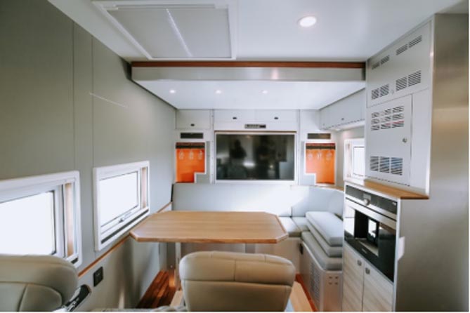 本次交付的车型均基于沃尔沃FMX系列底盘车打造。作为全球重卡界的明星车型之一,沃尔沃FMX不仅拥有硬派的外观造型,其强悍的性能轻松胜任越野需求。搭载D13K系列发动机,匹配I-Shift自动变速箱,1440转时即可迸发出2650牛·米的峰值扭矩,澎湃动力与顺滑的操控性可应付多种复杂路况和野外崎岖地形。此外,低噪音驾驶室、低矮的车门线、12英寸高分辨率动态显示屏、方向盘安全气囊等诸多人性化的细节,也为驾驶员带来兼具舒适性与安全性的用车体验。值得一提的是,沃尔沃FMX还是业界首个动力输出端车型,独立的发电机接口,可全面满足房车卡友户外用电需求。