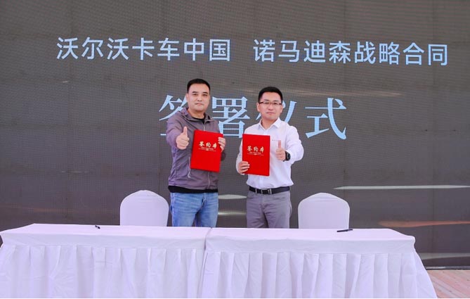 左:河南德野专用车辆股份有限公司董事长 赵东兵先生 右:沃尔沃卡车中国销售副总裁 郭涛先生