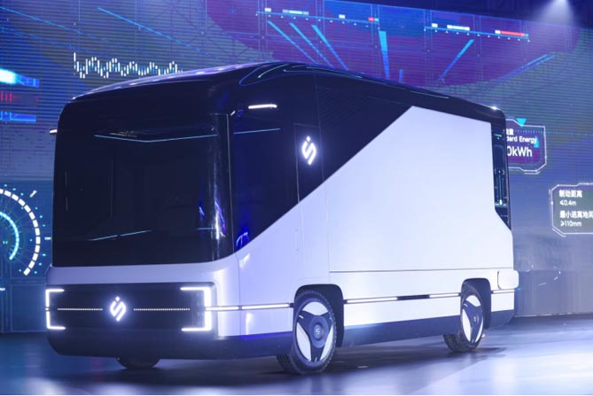 新能源智能商用车V1:这是一款致力于成为未来智能商用车解决方案的概念产品。车长5545mm、车宽2100mm、车高2150mm,续航里程高达320km,整车质量2.3吨,带来了商用车市场全新的产品理念。