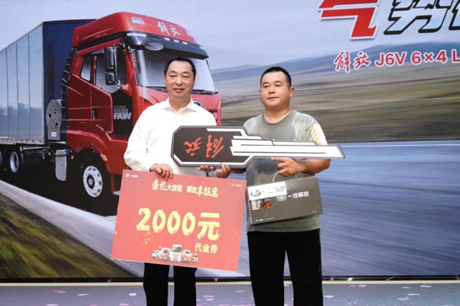 9月3日,以“燃擎高效,气势磅礴”为主题的一汽解放J6V-530LNG牵引车推介会在河北保定蠡县隆重举行,活动场面十分火爆,现场收获订单10辆。