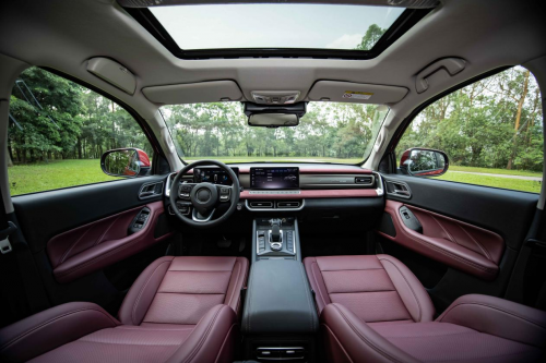 与硬朗外观相呼应,2023款越野炮内饰采用大面积软质包覆、搭配威尼托红颜色,高级感十足。12.3 英寸智联触控屏+7 英寸彩色液晶仪表双悬浮设计、镭雕工艺发光装饰板,科技感爆棚。同样设计师还非常贴心地设计了50瓦无线快充、加热通风真皮座椅、真皮方向盘、自动大灯、电动天窗、蓝牙钥匙等越级装备,即使越野行驶,也能实现媲美豪华乘用车的驾乘享受。