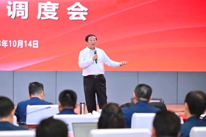 10月13日-14日,谭旭光在济南中国重汽总部主持召开中国重汽集团2023年前三季度全球市场运营调度会,全方位地调度了集团研发、营销、生产、质量等系统运营问题。中国重汽集团各权属公司主要领导干部、国内外销售办事处主任,线上线下600多人参会。