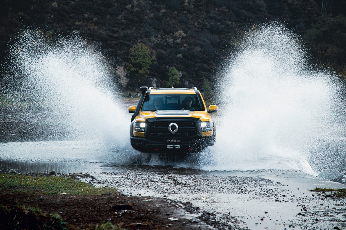 首先是一套令越野人都爱不释手的专业智能四驱系统,山海炮性能版拥有博格华纳4A+MLOCK智能四驱系统,配备前后桥电控牙嵌式差速锁,是真正意义上的“三把锁”,分动器扭矩容量达到1900N·m,智能、精准分配四轮动力输出,实现强大脱困和通过能力。与此同时,百万级越野装备随车一同出厂,包括前后金属保险杠/侧面金属侧踏保护、18英寸越野AT胎、K-MAN氮气减震、12500磅T-MAX绞盘等,标配涉水喉,最大涉水深度900mm,冲沙坡、翻沙梁、涉深水,面对户外种种未知困难路况发出的挑战,山海炮性能版从容接下战书,勇往直前,无所畏惧,大胆征服。