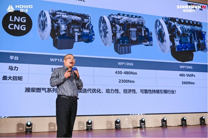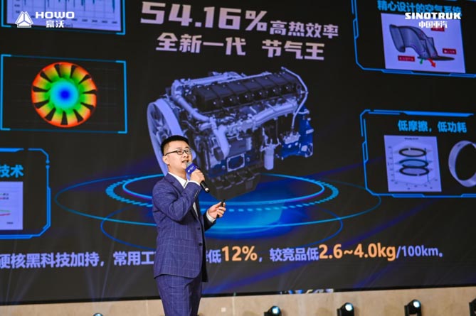 本次豪沃MAX新一代560马力燃气车,与潍柴强强联合,以搭载全球首款热效率突破54.16%商业化燃气机的无极S动力链,整车动力链体系化节气15.5%,风阻系数低于0.49、节气性能提升2%等多种硬核节气黑科技,领先行业,实现“雷霆动力”与“极致节油”的双效价值,助力客户高效运营、燃擎创富。