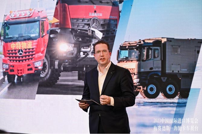 秦坦介绍首次亮相的梅赛德斯-奔驰进口卡车全系产品