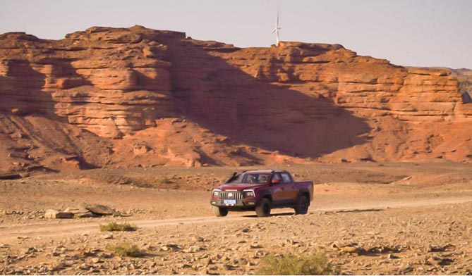 结束沙漠路段的行程后,驱车西行,迎战第三关考验,等待中国重汽皮卡的将是牧民道上不时出现的砂石路、戈壁路等更为复杂的路况,考验中国重汽皮卡的驾驶辅助功能和乘坐舒适性。