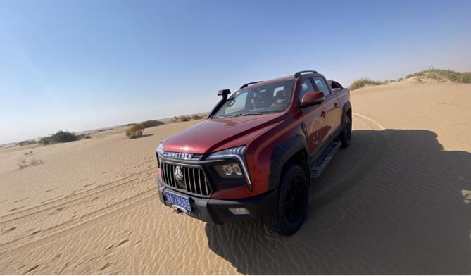 境内的乌兰布和沙漠是中国八大沙漠之一,也是越野爱好者的圣地,国内众多主流越野皮卡都曾在这片沙漠中开展过皮卡的越野能力测试,验证皮卡的越野性与耐久性。