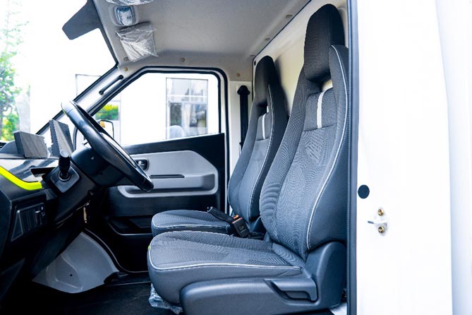 大力牛魔王D05空间优越的并不止货厢厢体,驾乘空间也同样宽裕。市面上的微卡车型因设计原因,多以凸地板为主,这就让本就不宽裕的驾驶室空间更显局促。大力牛魔王D05以宽平地板革新传统设计,释放腿部空间,驾驶员驾驶、休息、活动都更加自如。此外,全新的机甲造型,硬朗的车身线条,极大的提升了驾驶视野,再搭配四向调节座椅,驾驶员活动空间大,有效减少驾驶安全隐患和驾驶疲劳。