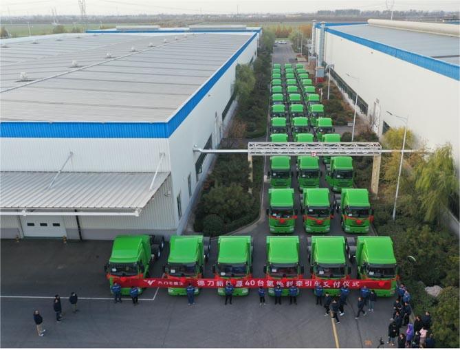 2023年11月29日,德力新能源再次顺利将40台49吨氢燃料电池牵引车交付给晶辉物流,并正式投入运营,这标志着德力新能源氢燃料电池商用车发展再上一个新台阶,抢占新能源重卡市场风口。安阳市各级政府领导、德力新能源管理层、晶辉物流的相关负责人以及各方合作伙伴,共同见证了这一重要时刻。