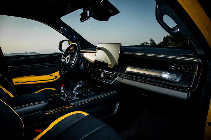 更大,全地形出行头等舱。山海炮性能版拥有同级最大车身,车长达5.46米、车宽近2米,接近全尺寸级别,带来同级最大、最宽、最舒适的驾乘空间。车内肘部宽度达到1.6米,首创后排座椅电动调节,最大靠背角达33度,舒适度比肩大型豪华SUV。