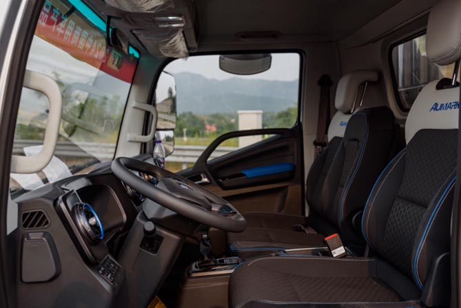 在驾乘舒适性打造上,采埃孚技术的自动挡变速箱具备蠕行、脱困、溜车提醒以及雪地和坡道辅助等多种功能,使得整车在各种使用工况中游刃有余,轻松解决城配工况下,启停频繁带来的驾驶疲劳。同时,具有加热、通风功能,带空气腰托的减震座椅、更加人性化的驾驶室布局及卓越NVH性能,赋予其同级别车型不可比拟的驾乘舒适性,为用户带来了更加舒适的驾乘体验和更加美好的运输生活。