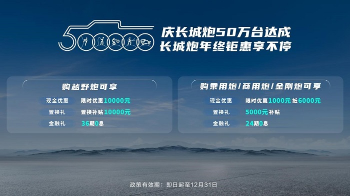 庆长城炮50万台达成 年终多重钜惠重磅来袭