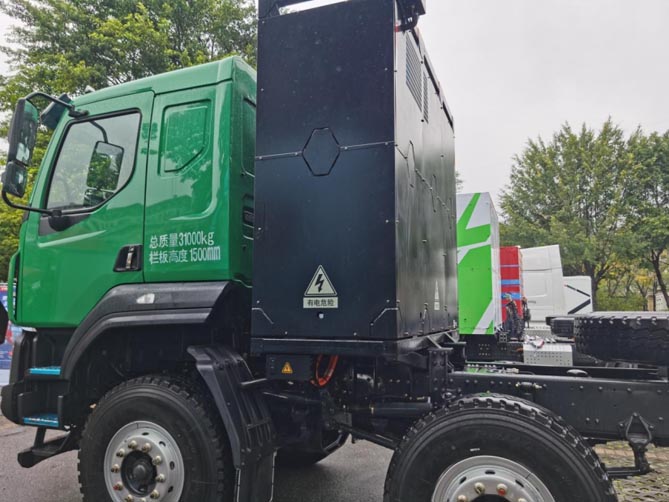 为保证驾乘安全,乘龙H5纯电自卸车采用国内先进的龙骨框架结构驾驶室和整体式车门,拥有双重保护;整车底盘的电器、高压插件防水等级至少为IPX7,部分插件达到了IPX8、IPX9,车辆还搭载了专为涉水工况改进的“涉水包”配置。半开型快换式制动器,滚轮镀铬处理,防锈性能提升,防止制动器卡滞。轮毂盒式油封,多道迷宫式密封结构,涉水工况下有效避免密封失效。主减油封,多唇口密封结构,保护油封免受水流冲击,提高可靠性。