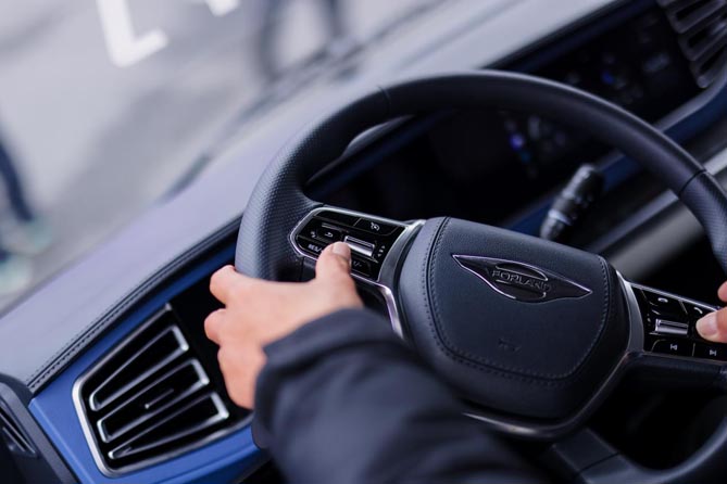 冷链运输的司机一般都非常注重时效,为了防止路上耽搁太多时间导致货物变质,卡友们路上很少休息,所以车辆舒适度就显得非常重要了。领航大G自然也考虑到了这一方面,舒适驾舱,智享无忧,运输省力一气呵成。在内饰配置上,领航大G搭载行业领先的双联屏,10.25寸液晶仪表,多媒体大屏搭载同行者智能语音控制系统,可对空调、音乐、收音机等进行语音控制,边开车边语音打电话“接活儿”,智能交互顺畅,省时省心;匹配气囊减震座椅,可选装靠背气动腰托、座椅通风加热让座椅更舒适,还有前排大通铺+座椅放平设计,让卡友的运输路上更加舒适温暖,寒冷冬日也不畏手畏脚,提高运输效率;其次,还匹配360°3D全景环视、一键启动、无钥匙进入、超大储物空间、 NVH升级等等高端、便捷的配置,为卡友提供了非常舒适和便利的驾乘环境,让卡友的创富之路更舒心。