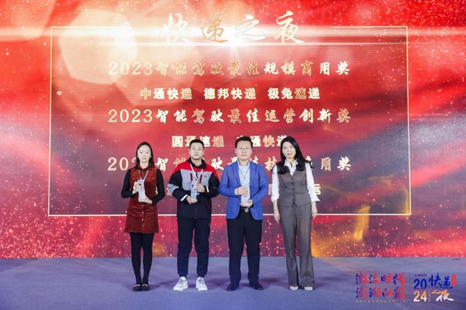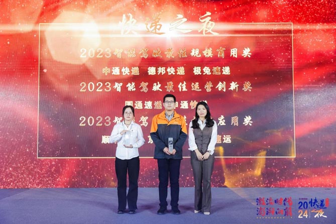 上台领取“2023快递智能驾驶卓越企业奖”