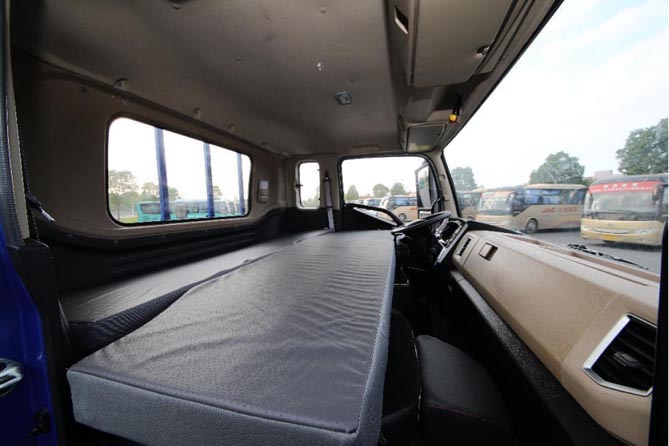 对于长途重载运输路线的货车司机来说,运输生活用“以车为家”来形容是非常准确的。他们早出也不一定能实现晚归,午休和夜间休息更多是在车上度过。为了给用户提供更加舒适和便捷的长途运输车生活,江淮1卡德沃斯T7以用户舒适为核心,对驾驶室设计花足了心思。通过整体驾驶室语言的设计和布置,德沃斯T7能够实现1.8m*1.08m大床房的配置,让用户无论是午休还是夜晚休息都能伸直双腿,充分休息疲惫一天的身体;除此之外,驾驶室内部设计有160L的魔术储物空间,通过顶柜储物盒、仪表板杂物盒、排半卧铺储物盒、靠背盒等储物配置为用户带来更大的储物能力,像被子等生活用品也可以轻松装下,大大提升了用户的长途运输生活舒适度。另外,像气囊座椅、智能大屏等舒适性配置也是可以选装的。