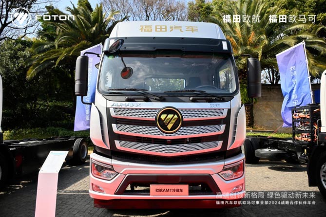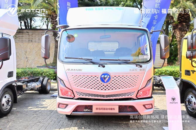 本次活动中,欧航AMT冷藏车、欧马可ES1纯电冷藏车、欧马可HS1混动冷藏车等多款重磅新品亮相。欧航AMT冷藏车产品针对城市周边的冷链运输需求打造而来,整车匹配全新康明斯F4.5动力,最大马力升级到240马力,最大扭矩提升到了850N·m,配合传动效率99.7%的采埃孚自动挡变速箱产品,起步有劲加速快、油耗更低,更舒适,为城市周边的冷链运输带来更高效、更高价值的运输装备。