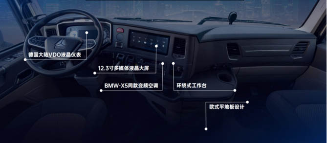 豪沃MAX燃气车在舒适性方面树立了行业新标杆,配备了诸多科技配置。其12.3寸多媒体液晶大屏、航空座椅、870mm超宽卧铺、16键设计多功能方向盘、BMW-X5同款变频空调以及萨克斯减震系统,为驾驶者带来如家般的舒适感受。该车采用了全新一代降噪技术,驾驶室内实测怠速噪音低于52分贝,让诸如孙先生的长途驾驶客户远离户外噪音,静享惬意驾乘。